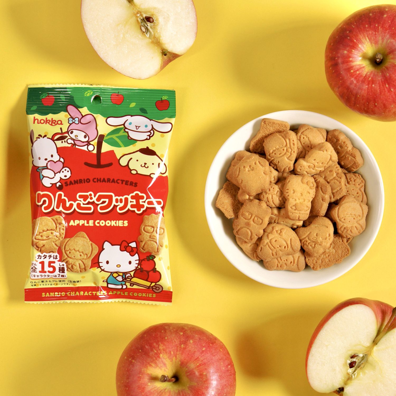 ●サンリオキャラクターズの形をしたりんご味のクッキーです。1/150の確率で「りんごを持ったキティ」が入っています。