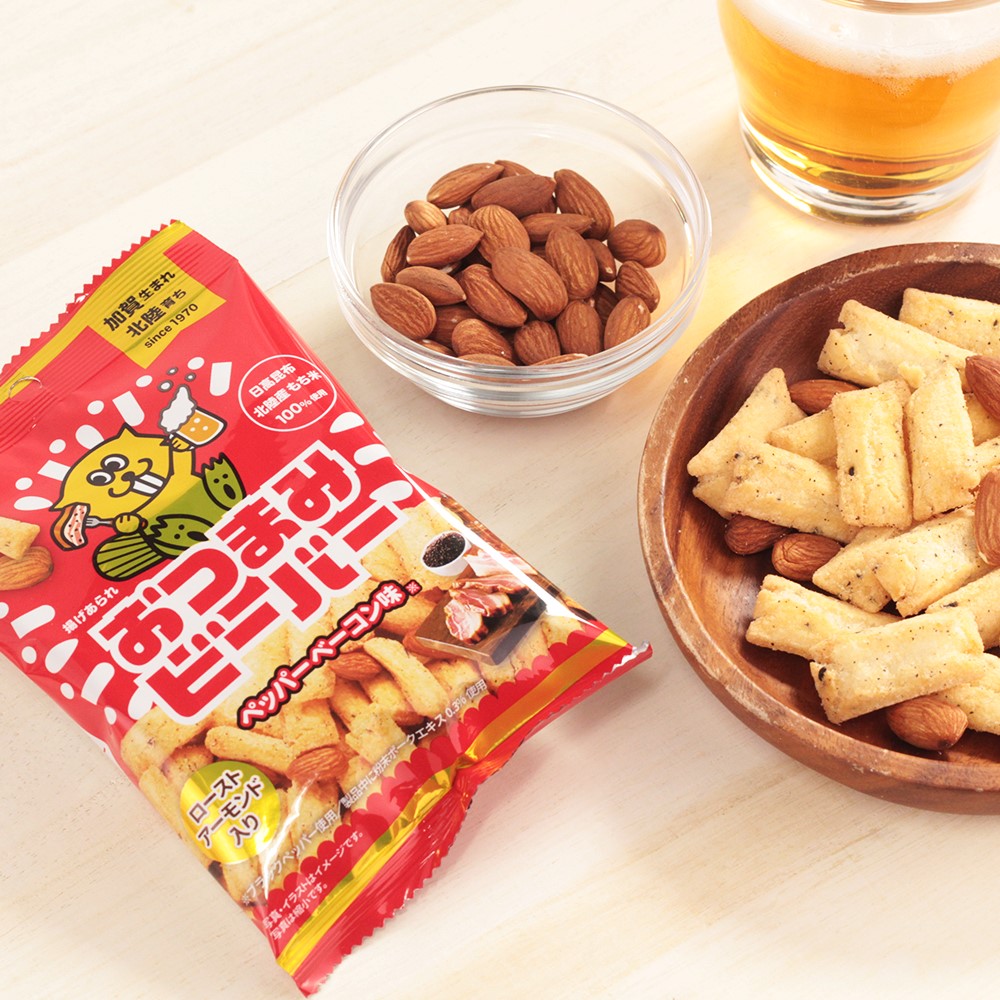 ペッパーベーコン味のビーバーとローストアーモンドが入っています!