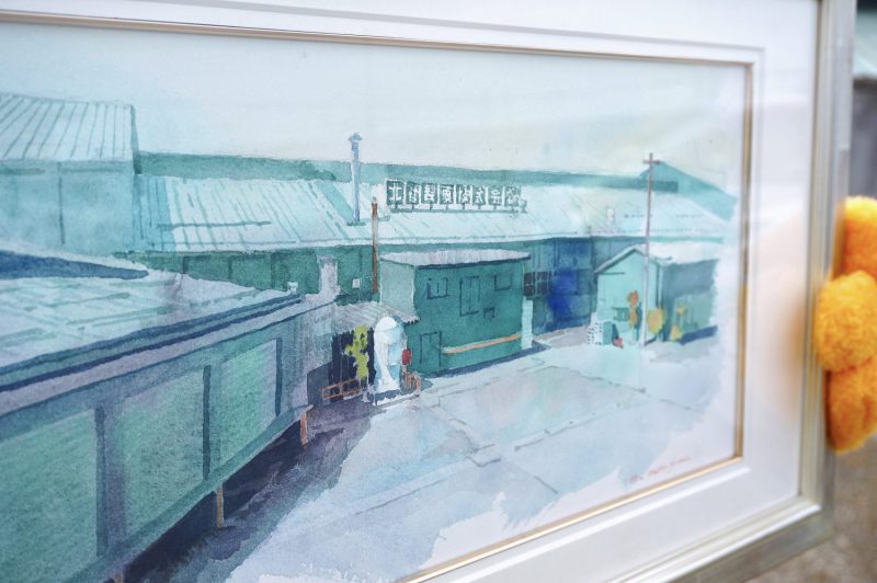 水彩タッチで描かれる工場に、思わず歴史を感じる一枚となっています。