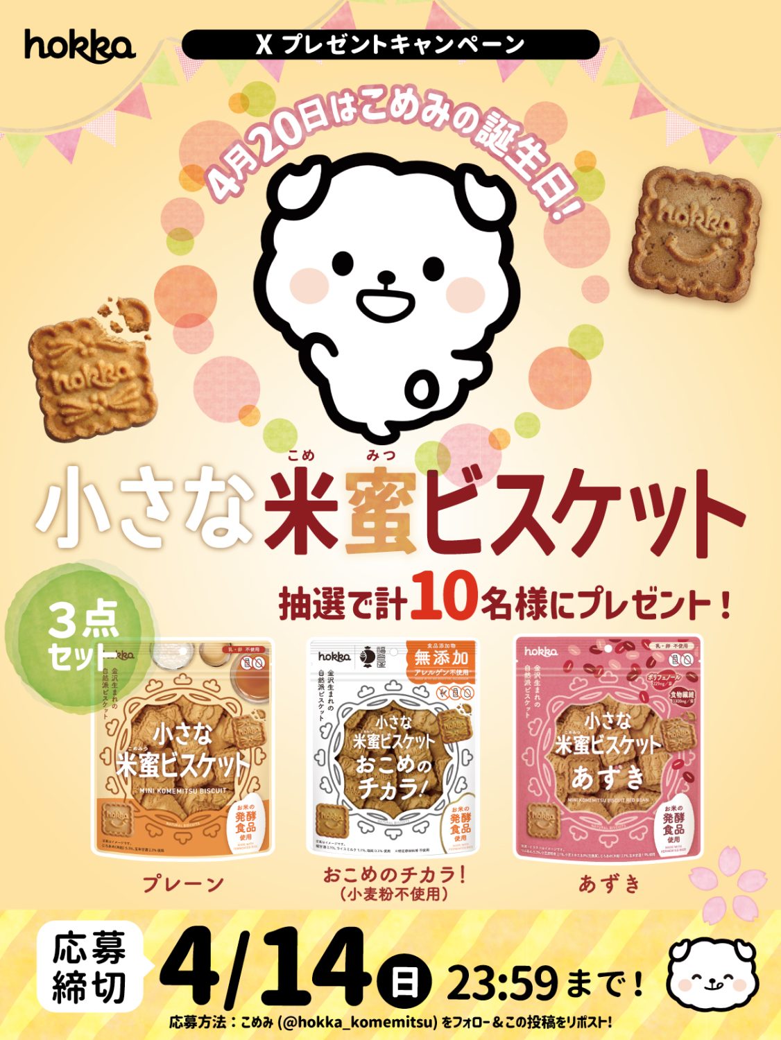 【応募は4/14(日)23:59まで】X限定「小さな米蜜ビスケットセット」プレゼントキャンペーン開催!