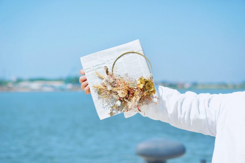 上品なドライフラワーに、「真鍮(しんちゅう)」とよばれる金属