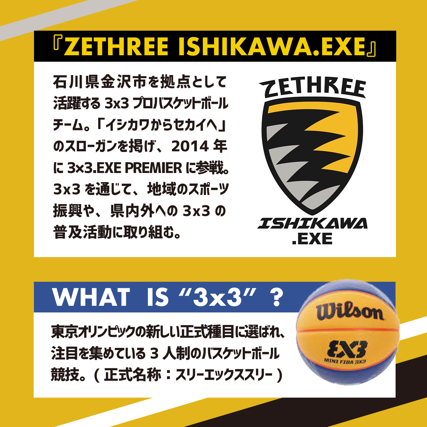 3×3プロバスケチーム「ZETHREE ISHIKAWA.EXE」のユニフォームスポンサーとなりました。