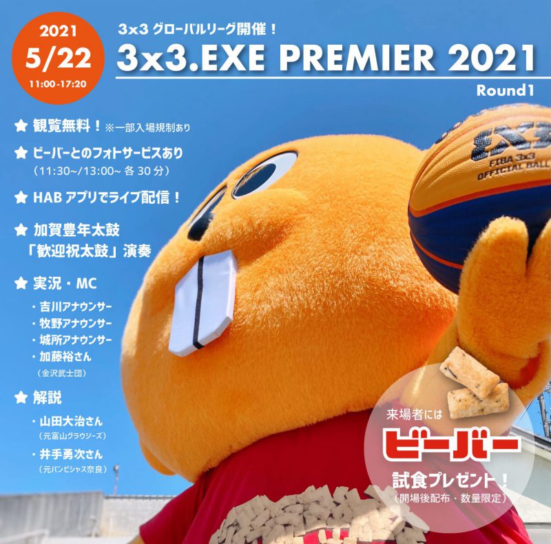 5/22(土)バスケ大会「3×3.EXE PREMIER 2021」開催!ビーバーとの写真撮影も!