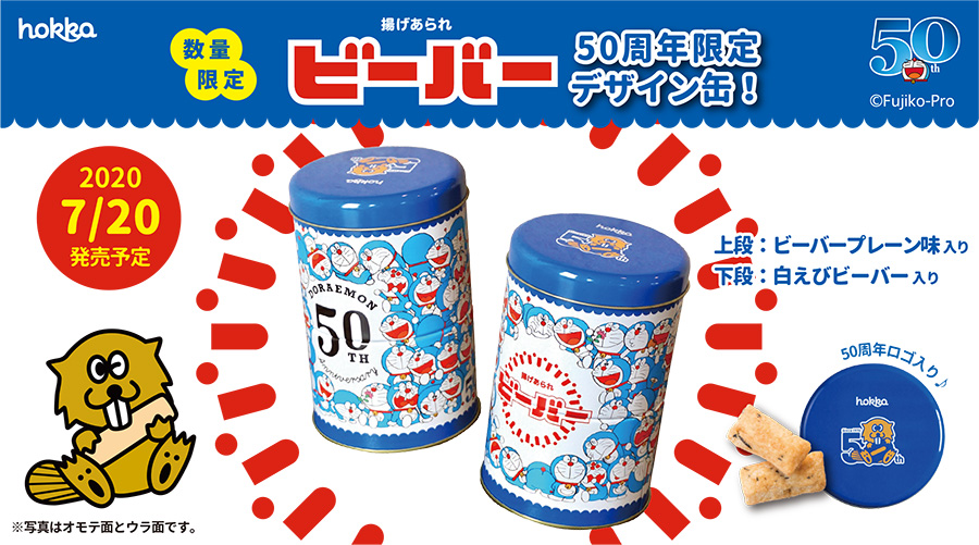 7/20(月)発売!50周年限定デザイン「ドラえもん ビーバー缶」