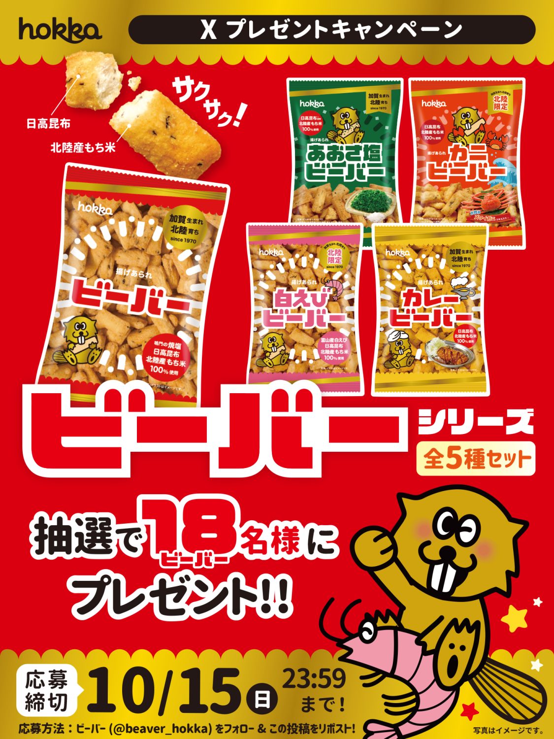 【応募は10/15(日)まで】X限定 ビーバー5種セット プレゼントキャンペーン開催!