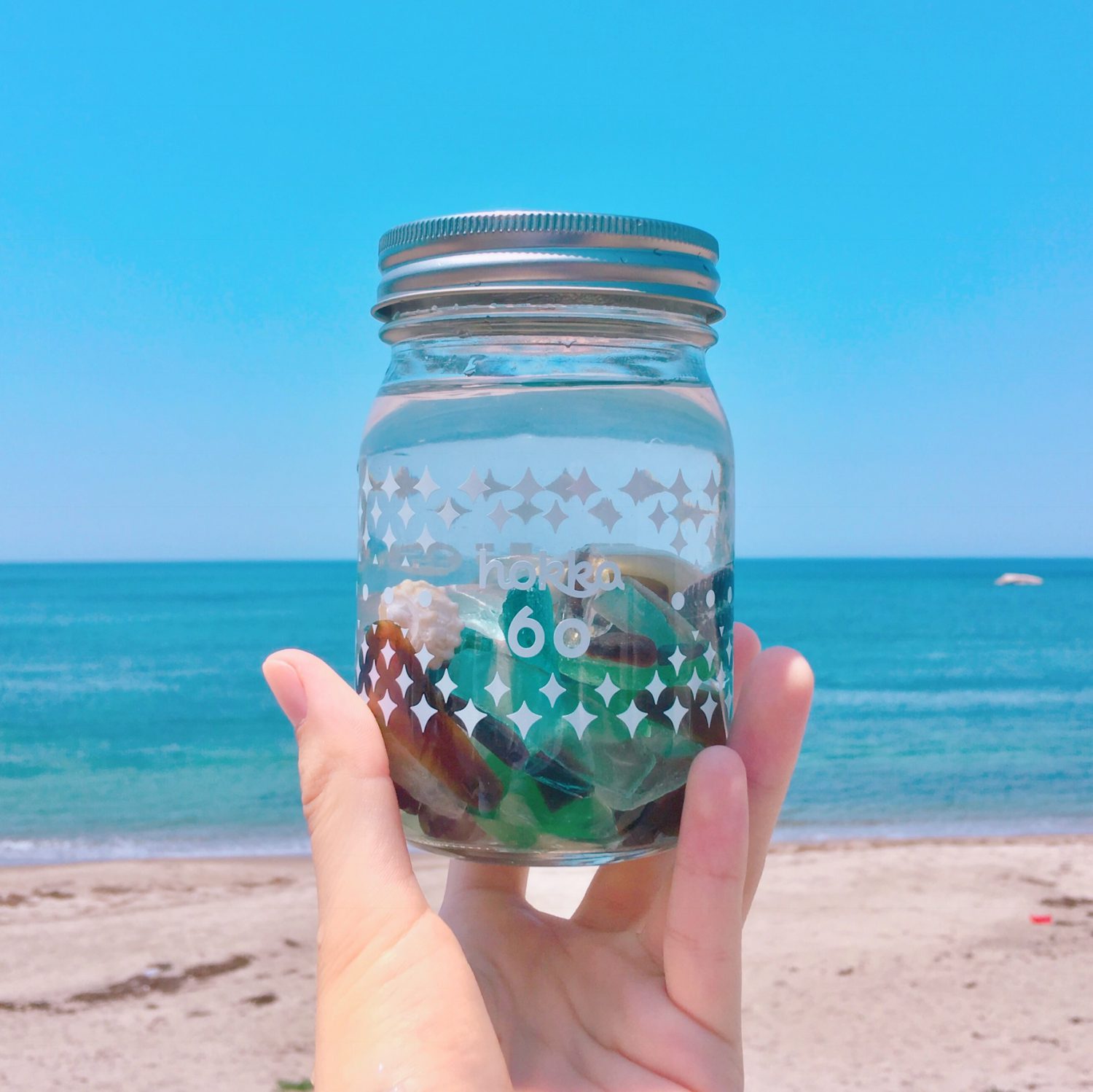 海で拾ったシーグラスを詰めたり・・