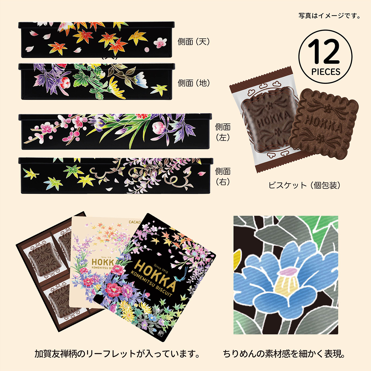 【8/7(月)新発売】米蜜ビスケットカカオ 加賀友禅柄ギフト缶(12枚入り)