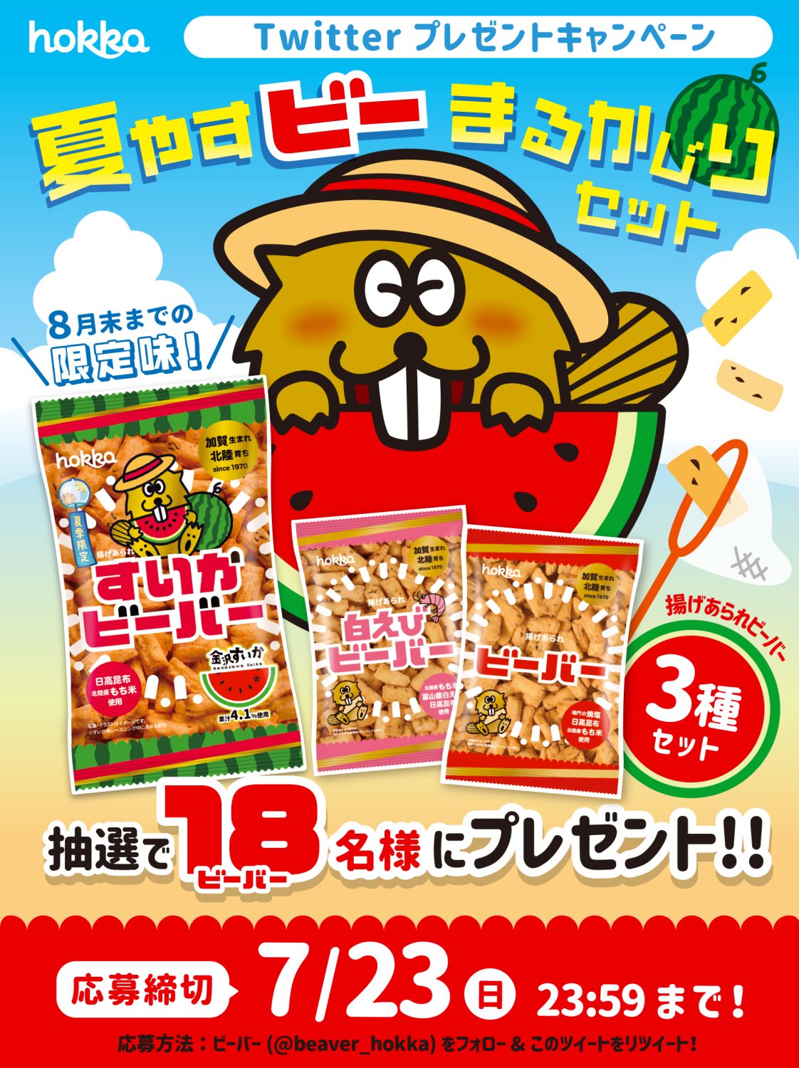 【終了・応募は7/23(日)まで】ツイッター限定 夏休みビーバーセット プレゼントキャンペーン開催!